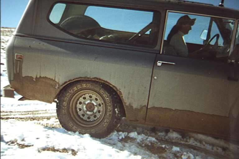A close-up shot of the rear. The Cooper treadpattern is clearly visible, along with an idea of the room on the passenger (unsprung) side. Julie was driving and was terrified she was going to roll because the driver's rear tire had actually come unweight