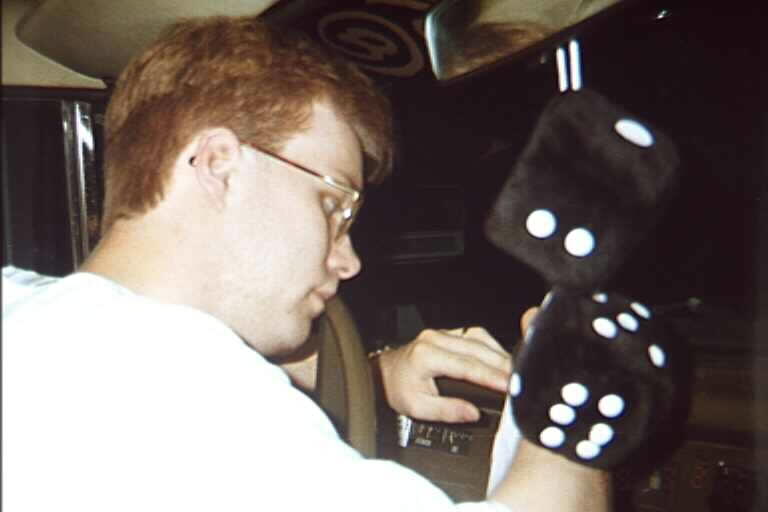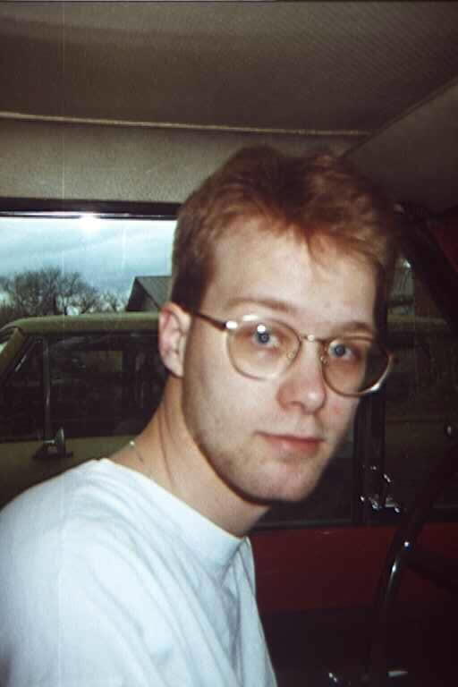 In my driveway.. you can see my yellow '72 Scout II through the window. Yep, that's me. Handsome looking son of a gun, isn't he? ;)
