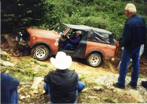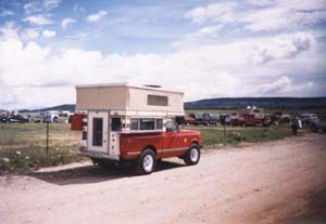 The next morning I made my farewells to Bill and Darrel and the others as they left to go wheelin'.. then I made my way to the showers, and let my sleeping bags dry out on top of the Scout while I showered. I then packed up camp (leaving the lantern, of course), visited with the McFarling children for a bit.. then helped out some with some folks from Kansas, trying to change out the input gear on their Dana 300.. and then I stopped to see Eldon and Rose as I left Fairplay, headed towards Moab.