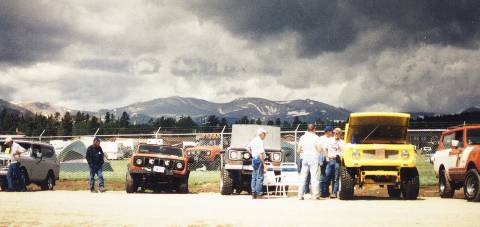 Willy and I fired up our 'Binders and headed to the big line-up to take our places and be judged. As I was backing into my spot, trying to get in-line with the others, I started to drive off the back of the dirt bank we were parking along! At first, I was alarmed.. then I thought.. Cool, I can show off my rear articulation! And so it went that every truck after me did the same thing. :-)