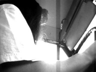 While traveling to Missoula, my fiance', Julie, asked if she could drive.. so, while she was driving, I plugged my handy little 12V - 120VAC converter into the lighter socket, fired up the laptop, and plugged in my black and white Connectix QuickCam and start taking some pics.. (and a few BIG AVIs) Sorry the pics are only 64 grays, but my color QuickCam chews up a LOT of CPU, and besides.. I was busy taking the B/W Cam out to my friend Dan, my Scout's former owner, so I had it handy..